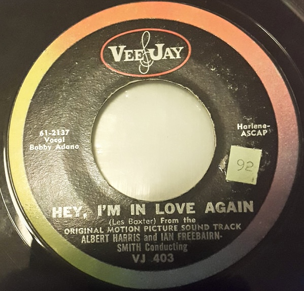 09 61....VJ 403....From the ORIGINAL MOTION PICTURE SOUNDTRACK ALBERT HARRIS and IAN FREEBAIRN-SMITH Conducting - Vocal Bobby Adano..Hey, I'm In Love Again (61-2137)/Aliki Aliko Alakazam (61-2134)