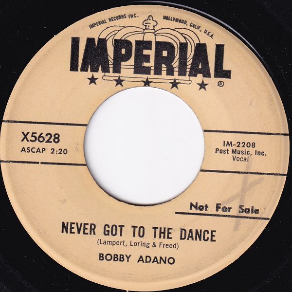 10 59....X5628....BOBBY ADANO..Eager Beaver Heart (IM-2210)/Never Got To The Dance (IM-2208)