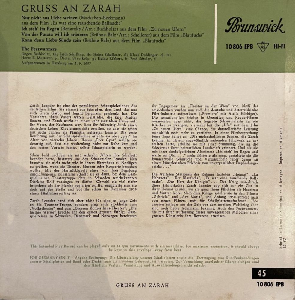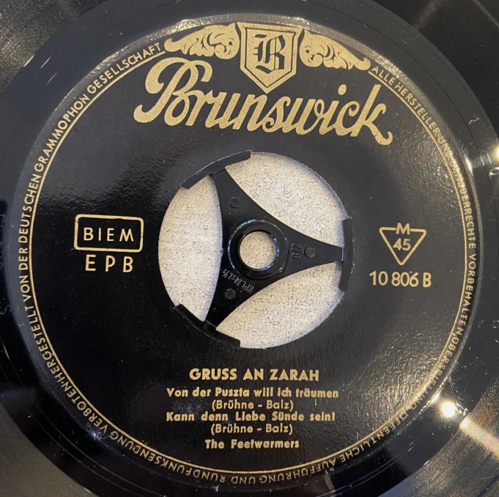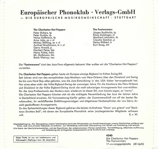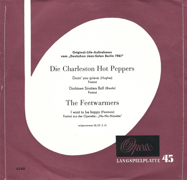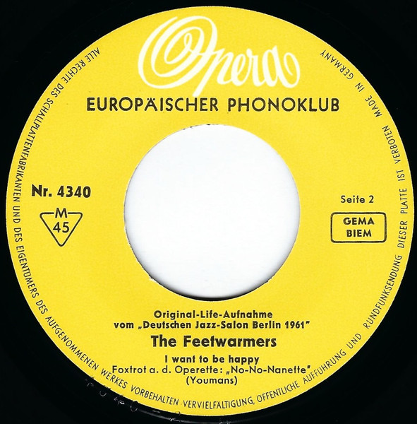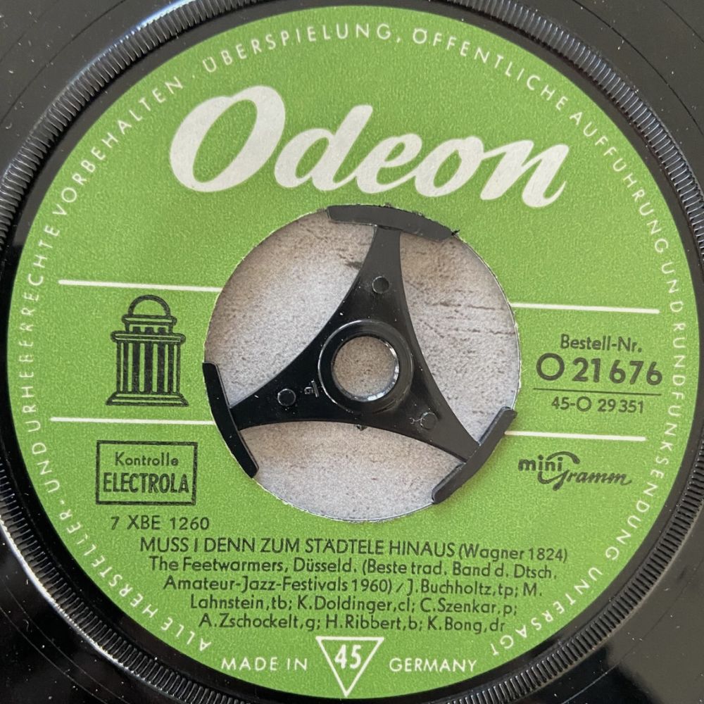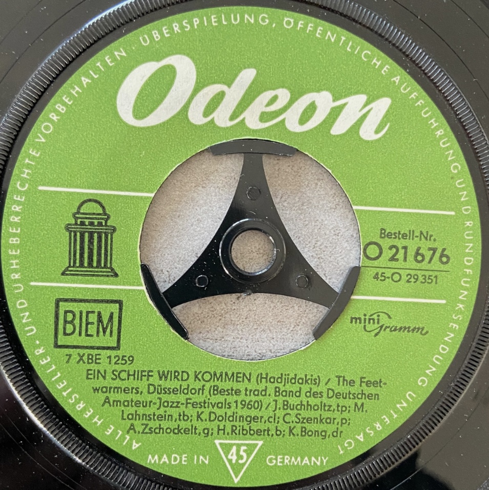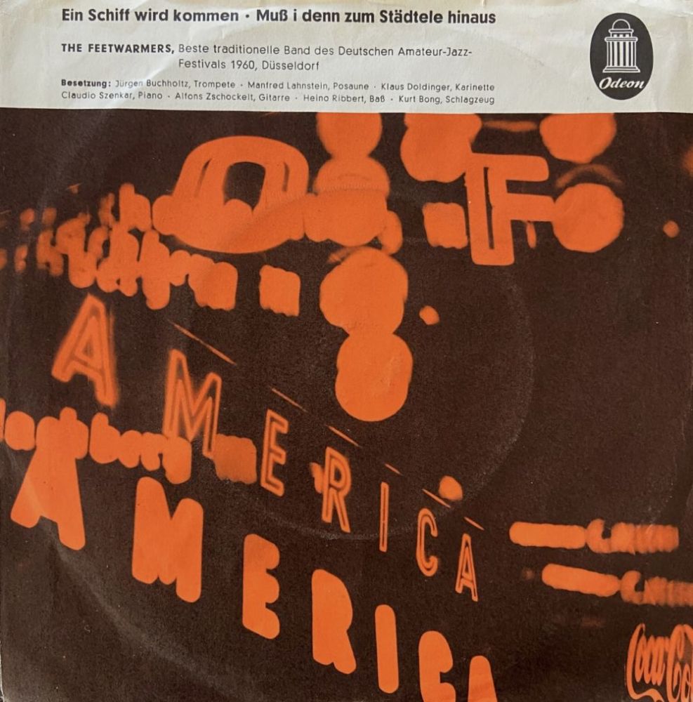 12 60....O 21 676....The Feetwarmers, Düsseldorf (Beste trad. Band des Deutschen Amateur-Jazz-Festivals 1960) / J.Buchholtz, tp; M.Lahnstein, tb; K.Doldinger, cl; C.Szenkar, p; A.Zschockelt, g; H.Ribbert, b; K.Bong, dr..Ein Schiff wird kommen/Muss i denn zum Städtele hinaus