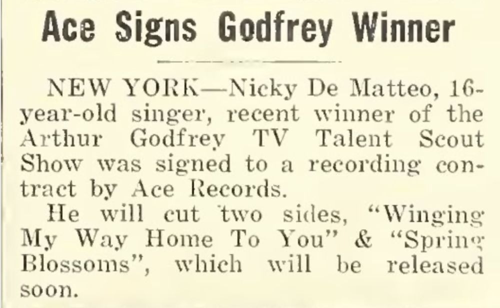 in der Arthur Godfrey TV Talent Show. Kurz darauf meldete