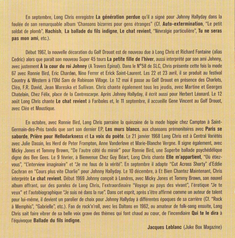 06 64….B 373.389 F….LONG CHRIS et les Codwen..Je suis un cvavalier solitaire ”Lonesome Traveler”/Le train qui part ce soir