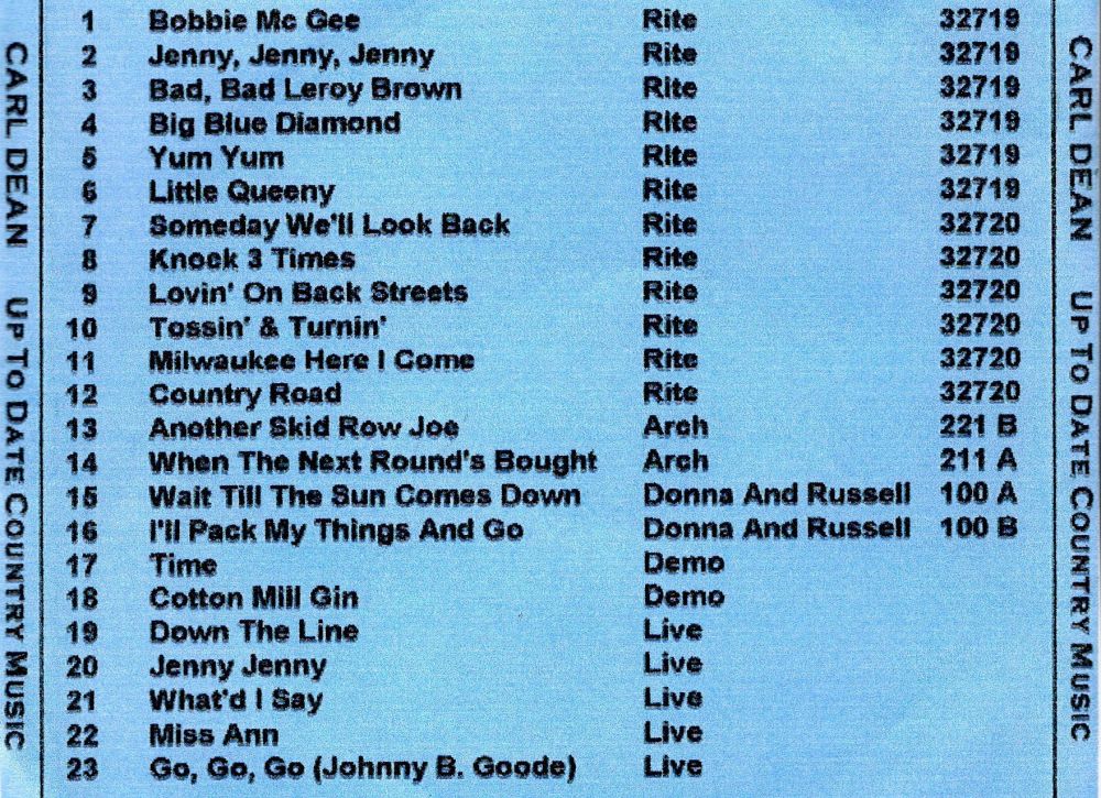 Wie Carl Dean in einem Interview im September 2001 sagte: „Ich plane und spiele alle meine Konzerte selbst und verpasse nie eines. Meine erste Liebe ist und bleibt die Musik“, fügte er hinzu. „Ich plane meine Auftritte sechs bis acht Wochen im Voraus und nehme mir dann etwa eine Woche frei, bevor ich wieder auf Tournee gehe.“ Im selben Interview bedankte er sich besonders bei allen Einwohnern von Murphysboro und Umgebung, die ihn und seine Karriere über die Jahre hinweg unterstützt hatten.