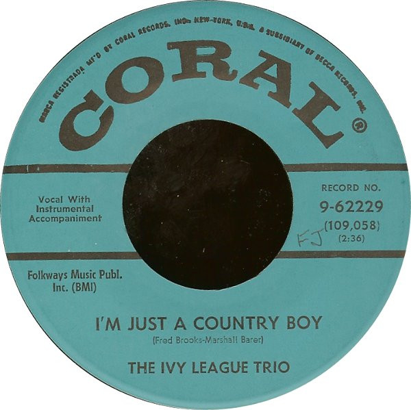 09 60....9-62229....THE IVY LEAGUE TRIO..If You Go Across The Sea (109,057)/I'm Just A Country Boy (109,058)