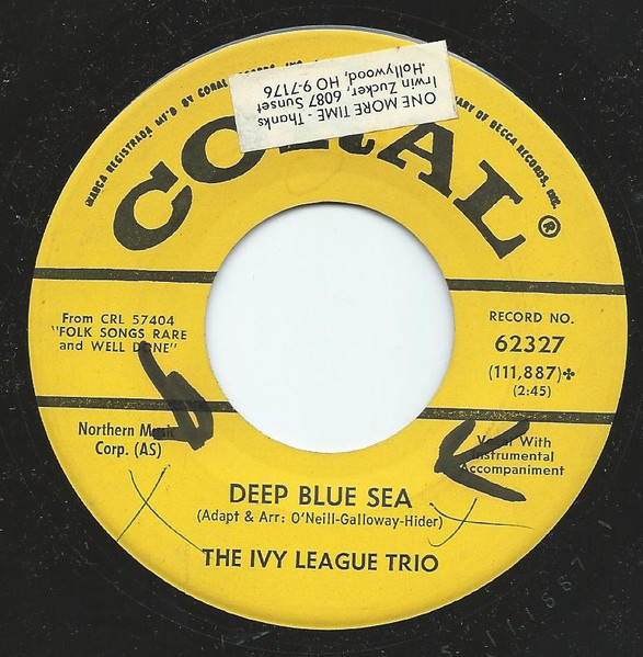 08 62....62327....THE IVY LEAGUE TRIO..Deep Blue Sea (111,887)/Winken Blinken And Nod (111,879)