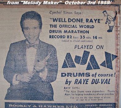 Wie angedeutet, sah er Ende der 1950 er Jahre den Wandel in der Musikszene und wechselte zur 'dunklen Seite' und zum Rock 'n' Roll. Doch es gab noch mehr: Zwischen 1959 und 1969 war er, wie ich bereits erwähnte, dreifacher Gewinner des World's Non Stop Drumming Marathon Contest. Dies wurde vom Guinness-Buch der Rekorde und der National Jazz Federation bestätigt.