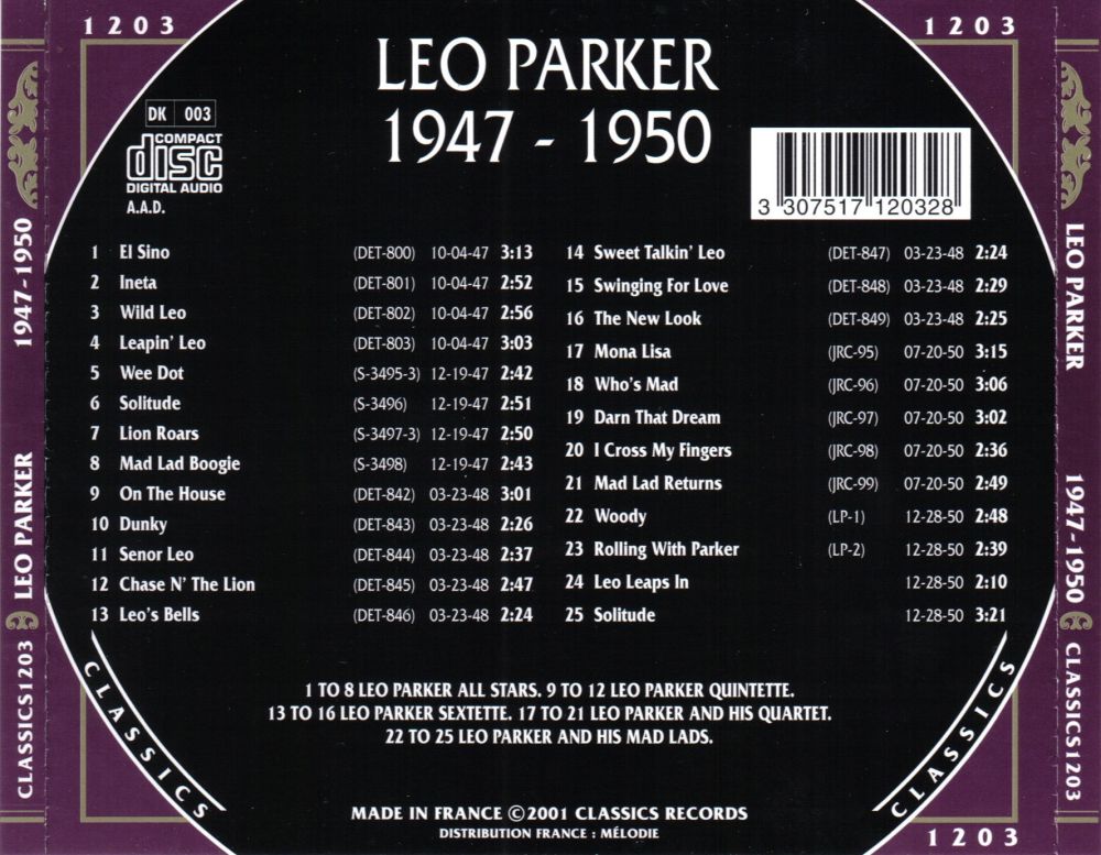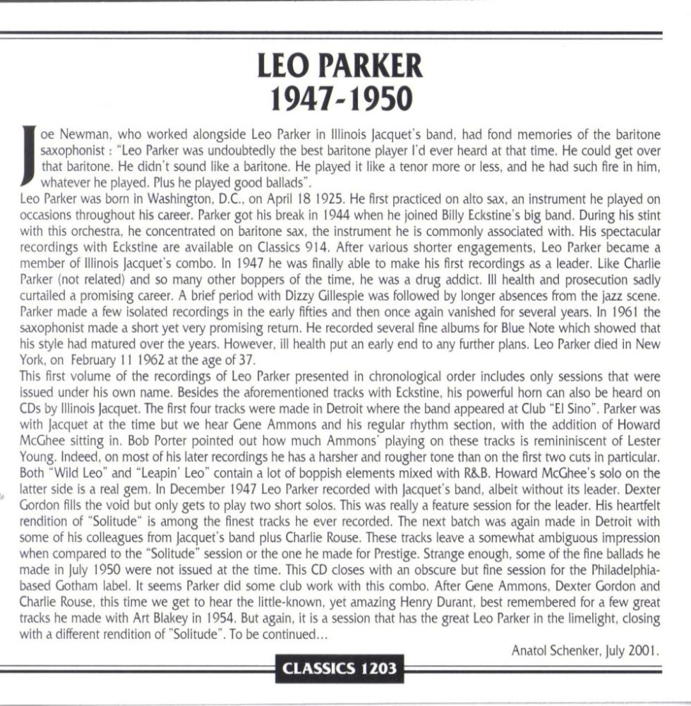 Der Alto- und Bariton-Saxophonist Leo Parker wurde am 18. April 1925 in Washington, DC, geboren und verstarb am 11. Februar 1962 in New York City, erst 36-jährig, an einem Herzinfarkt. Er arbeitete mit einer Reihe bekannter Namen in der Musik-Branche zusammen.