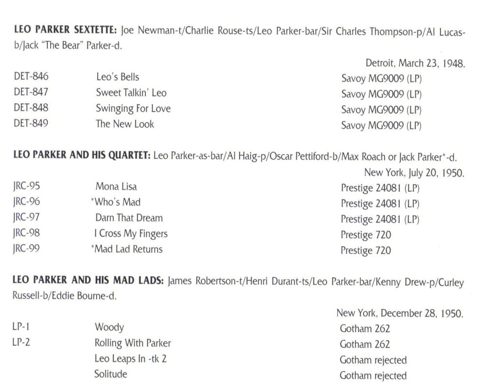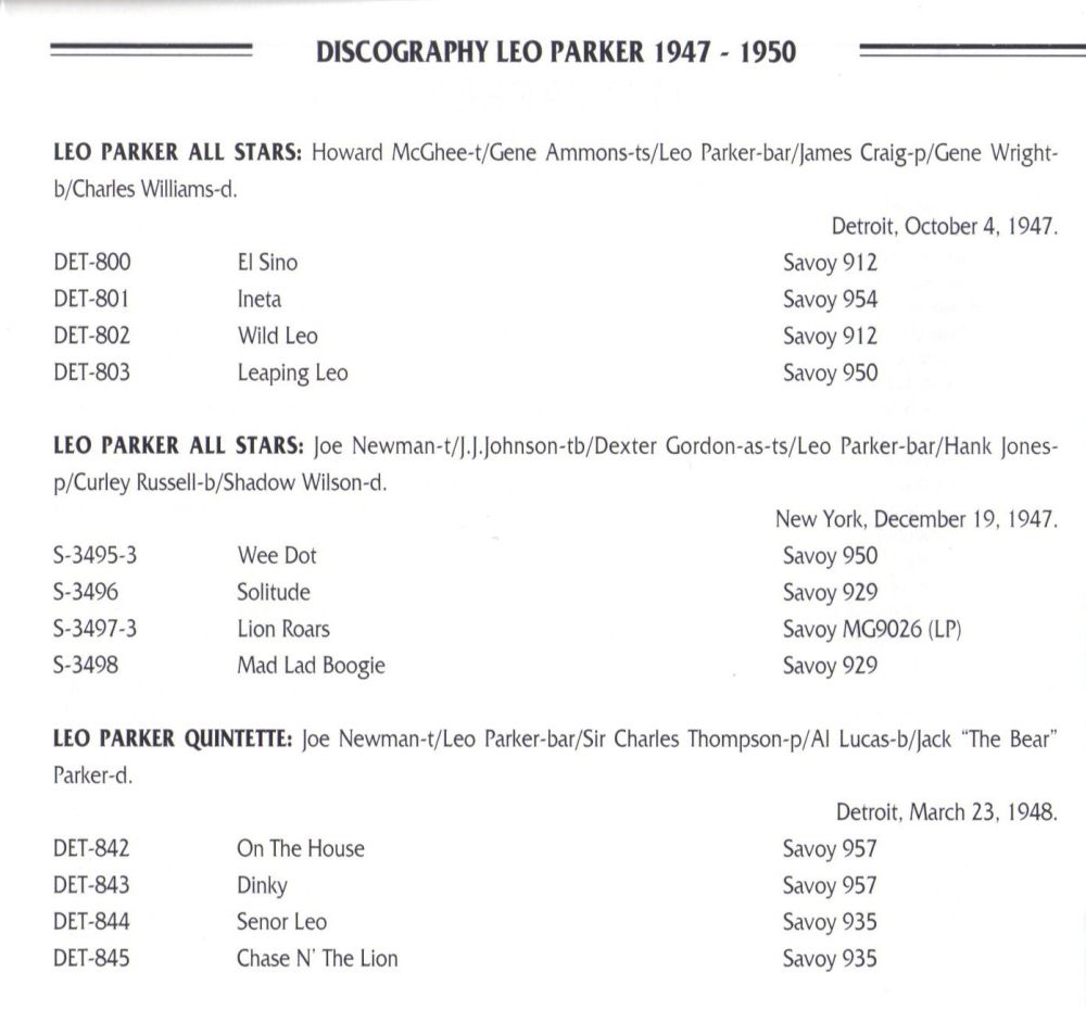 11 61....45-1822-A....LEO PARKER - John Burks, Bill Swindell, Leo Parker, Yusef Salim, Stan Canover, Purnell Rice..Blue Leo/-B….Let Me Tell You 'Bout It