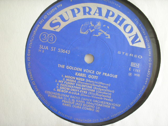 Hier noch eine nicht uninteressante LP von Karel Gott. The Golden Voice of Praque, englisch gesungen. Supraphon-Label.