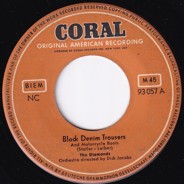12 55....93 057 A....The Diamonds Orchestra directed by Dick Jacobs..Black Denim Trousers And Motorcycle Boots/ B.…Nip Sip (CORAL 61502)