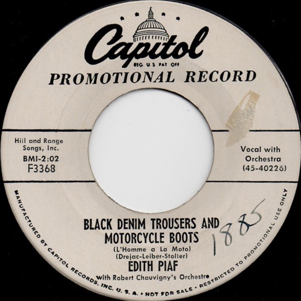 03 56....F3368....EDITH PIAF with Robert Chauvigny’s Orchestra..Black Denim Trousers And Motorcycle Boots (L'homme a la moto) (45-40226)/Suddenly There's A Valley (Vallee) (45-40223) (dann F: COLUMBIA 209/210)