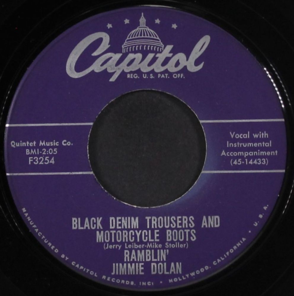 10 55....F3254....RAMBLIN' JIMMIE DOLAN..Black Denim Trousers And Motorcycle Boots (45-14433)/You Don't Love Me (But I'll Always Care) (45-14434)