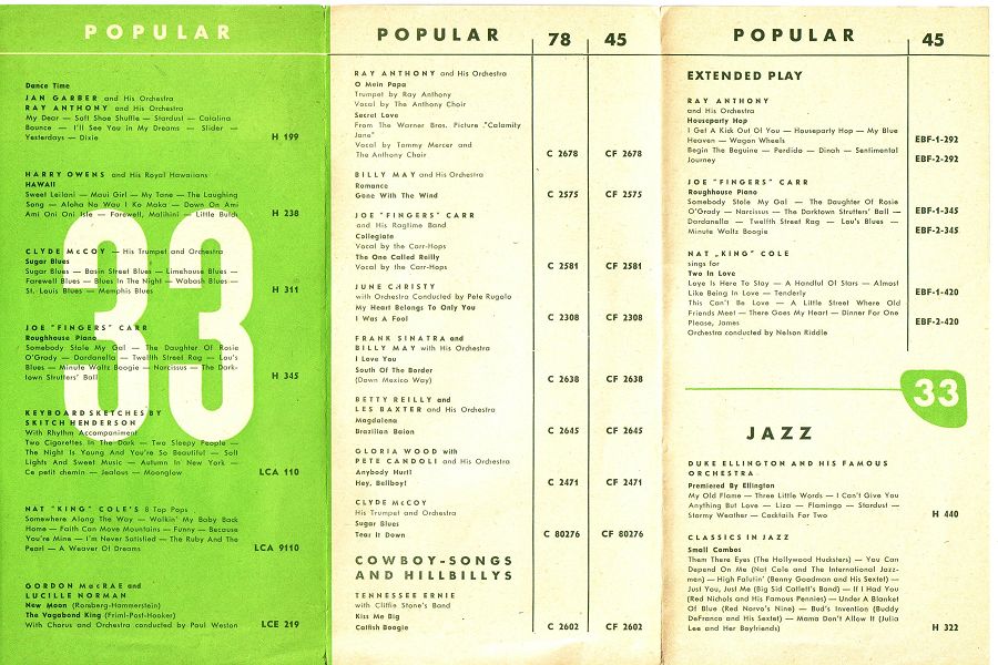 hier ein Scan des oben genannten Prospektes - leider nicht allzuviel interessantes auf Capitol enthalten. Aber immerhin die Billy Strange Scheibe (wurde von mir hier schon vorgestellt) und Tennessee Ernie Ford.