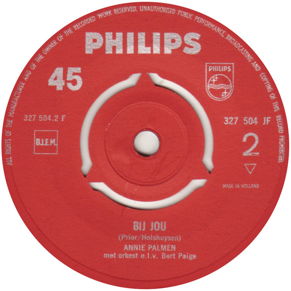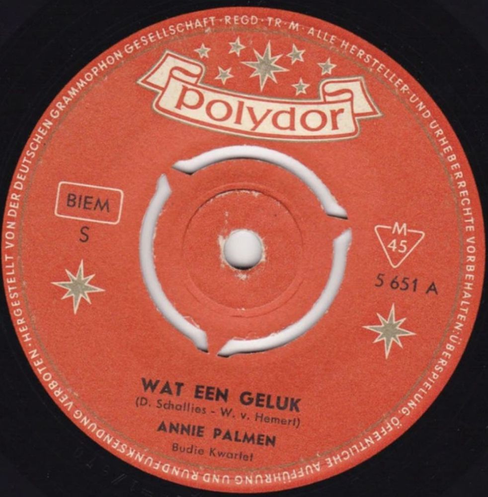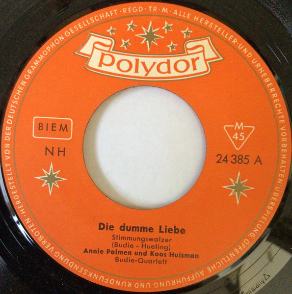 PALMEN, ANNI (E) (ANNA MARIA PALMEN) * 19.08.1926 in Ijmuiden/Noord-Holland, + 15.01.2000 in Beverwijk nach längerer Krankheit, Sängerin aus Holland, begann ihre musikalische Laufbahn im Alter von 15 Jahren als Sängerin eines hawaiischen Orchesters, Mitglied eines Cowboy-Trios, sang bei einem Tanzorchester in Haarlem, Gewinn eines Talentwettbewerbs des niederländischen Radiosenders KRO im Jahr 1948, seit 1948 Erfolg mit Funk-Aufnahmen, 1958 Hit mit "Ik Zal Je Nooit Meer Vergeten", 1960 Nationaal Songfestival, 1960 Polydor 24385 ("Die Dumme Liebe"/"So Schön" & KOOS HUISMAN), 1963 Grand Prix (Platz 13), 1965 Artone OS 25309 ("Ich Tanze Mit Dir (In Den Himmel Hinein)"/"Was Kann So Schön Sein (Wie Deine Liebe)")
