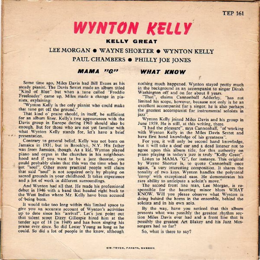 Wynton Kelly war ein stark unterschätztes Talent. Er war sowohl ein eleganter Klaviersolist mit einem rhythmisch mitreißenden Solostil, in dem er Bebop-Linien mit einem ausgeprägten Gespür für den Blues verband, als auch ein besonders versierter Begleiter, begabt mit absolutem Gehör und einem sehr individuellen Blockakkordspiel. Kellys Werk war stets hochmelodisch, insbesondere seine Balladen, während seine Midtempo- und Uptempo-Stücke von einem unwiderstehlichen Swing geprägt waren.