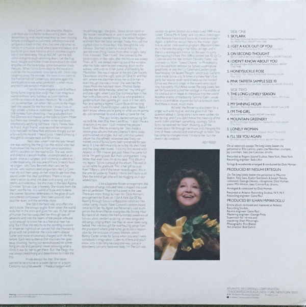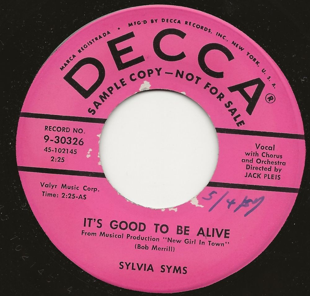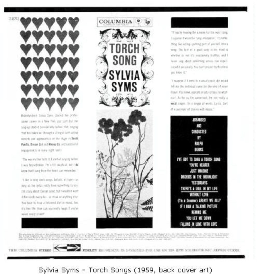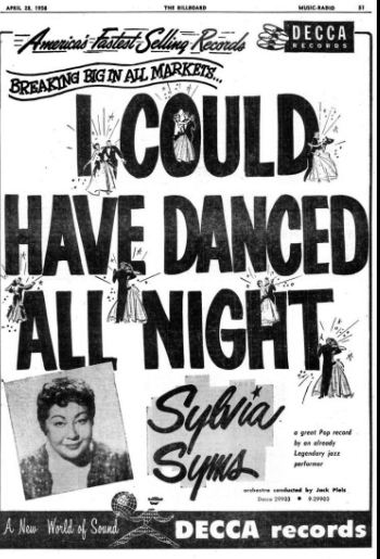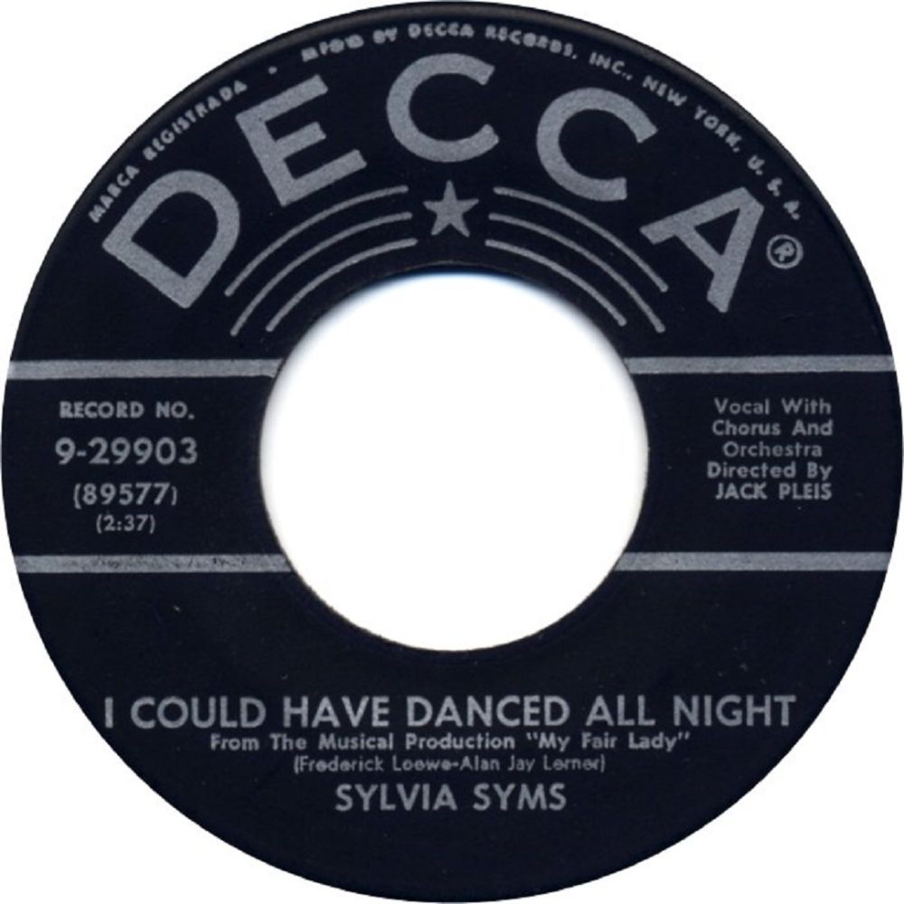 Sylvia Syms (Sylvia Blagman), * 02. Dezember 1917 in Brooklyn/New York City, + 10. Mai 1992 in New York City, gehörte eigentlich zum Jazz-Genre, sie war ein Night Club Entertainer und machte insbesonders mit ihrer Interpretation des Titels “I Could Have Danced All Night“ aus dem Musical “My Fair Lady“ auf sich aufmerksam.