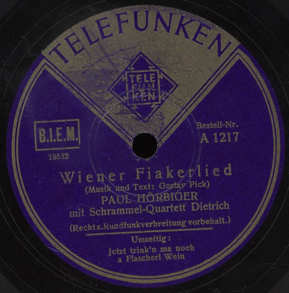 Die Schellack mit dem Fiakerlied aus dem Netz: