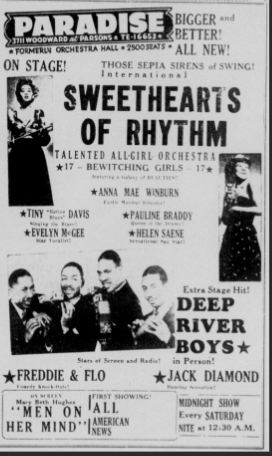 „... At the Apollo Theater they put me in front of the band, and that's when I started directing the band. And the band continued as the International Sweethearts of Rhythm under the direction of Anna Mae Winburn.“ — Anna Mae Winburn