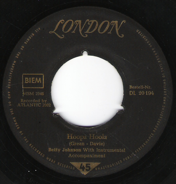 Aber du hast mich inspiriert. Betty Johnson war bei uns schon von gewisser Bedeutung. Wer kennt nicht ihr "Hoopa Hoola". Immerhin gab es bei uns drei LONDON-Singles von ihr, von denen ich leider keine Einzige habe: