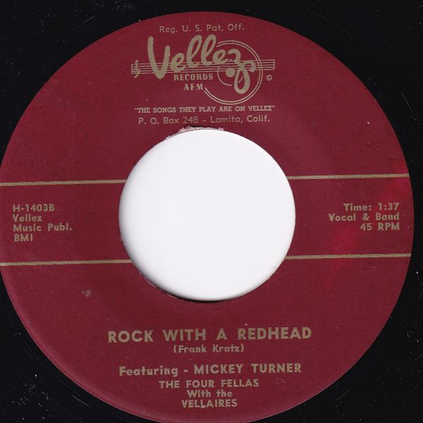 10 58....H-1403A....Featuring - MICKEY TURNER THE FOUR FELLAS With the VELLAIRES..Be There Baby/B….Rock With A Redhead