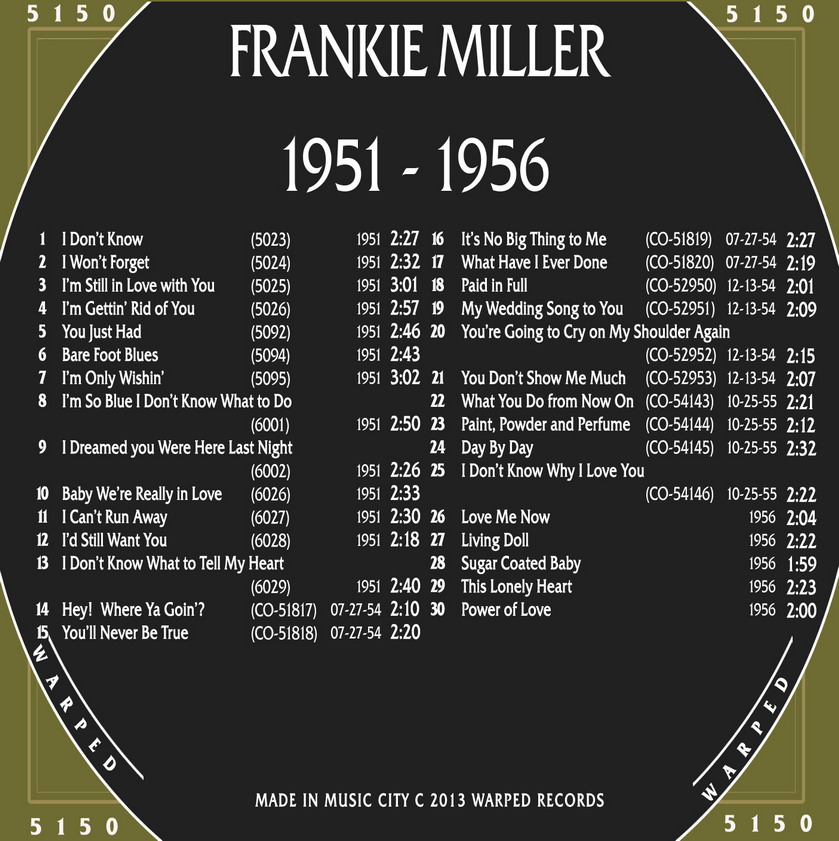 11 51....5051....FRANKIE MILLER..I Don't Know/I'm Getting Rid Of You