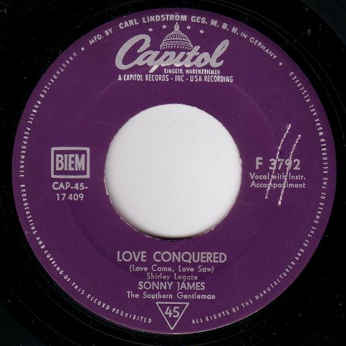 | Information: | Sonny James - A Mighty Lovable Man / Love Conquered / Capitol F 3792 / 1957/1958 |