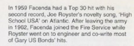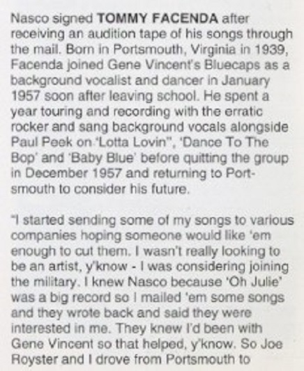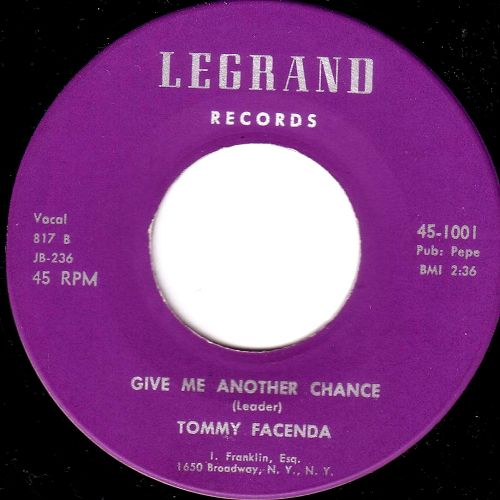 Hier ein Unikum in der 50er-Musikszene. Tommy Facenda brachte die erste Single bei LEGRAND raus - habe ich mir vorerst einmal gedacht, aber Michael hat entdeckt, dass sein Platten-Debut bereits ein schwaches Jahr vorher auf NASCO erfolgte: