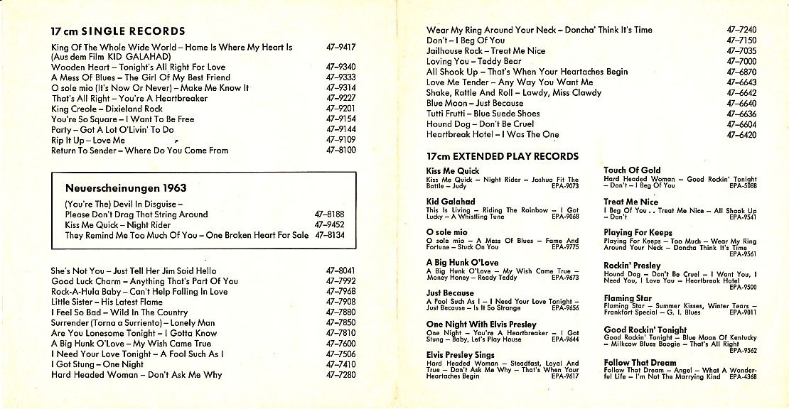 Ich ging näher heran und entdeckte schließlich, daß ich ein Elvis RCA-Schallplattenprospekt von 1962 gefunden hatte!