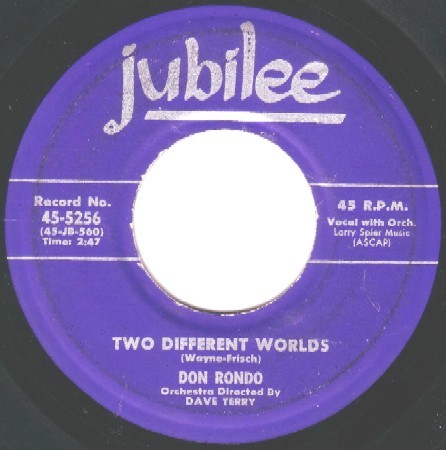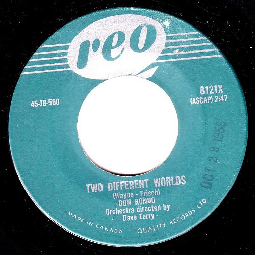 In reference to one of Don’s more recent releases, Music Vendor was quoted with - “Curtain Call: Don Rondo’s Jubilee platter of “There’s Only You”, while Billboard magazine tossed a bouquet via “Rondo registers strongly with his delivery of “There’s Only You”…this appears to be the loot platter”. And continuing along Don’s musical trail of song, Ontario, Canada’s Daily Star added their rave with “Two Different Worlds” has made disc history”.