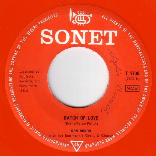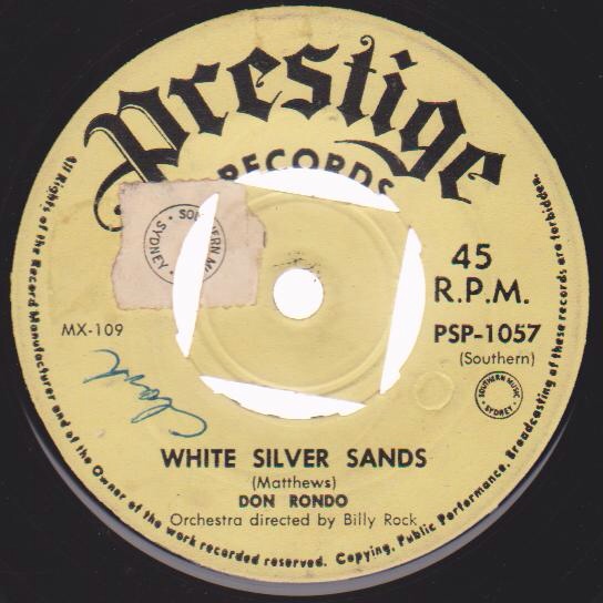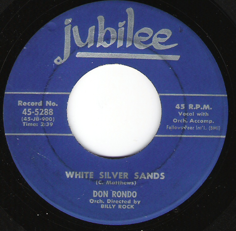Ted Pearson of Radio-TV Daily served as a fortune teller supreme when he stated - “Recommended record: “White Silver Sands” by Don Rondo. Rondo really lets go on this one and produces a potential top click”. Mr. Pearson, how right you were!!