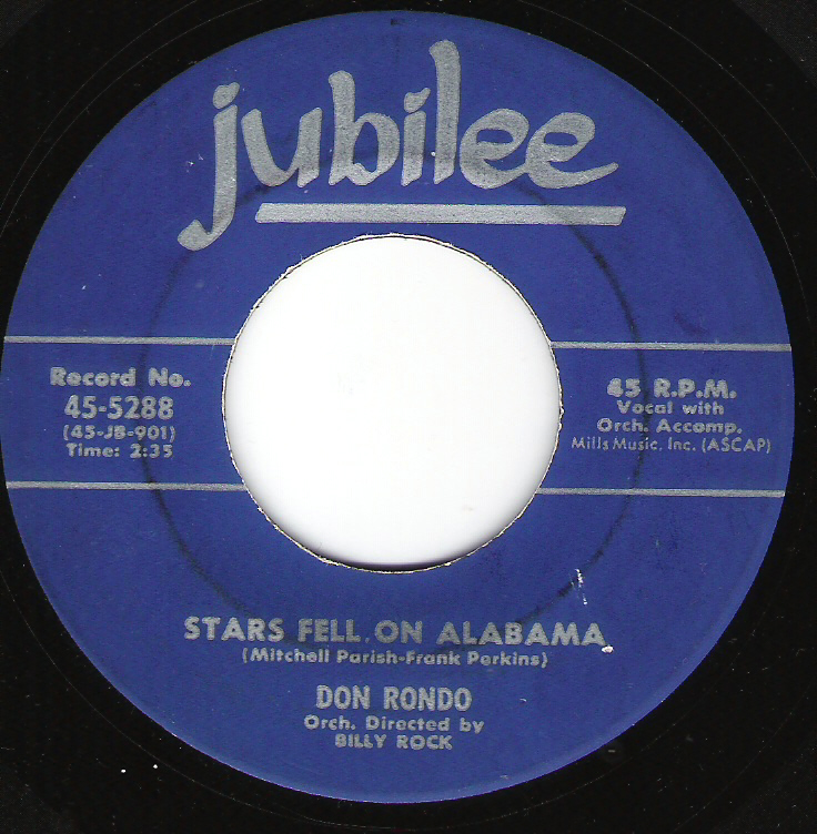 When the critics write about Jubilee Records’ Don Rondo, more than often their introductory sentences began: “From farm boy to charm boy”, for indeed, Don did get his start in the music game while working on his Dad’s farm outside of Springfield, Massachusetts. One day, while “serenading” his barnyard friends, a passer-by heard the Rondo rhythms, suggested that the handsome crooner give serious though to a musical career, and that’s how it all began.