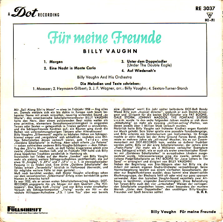 RE 3037 Billy Vaugn / Für meine Freunde, weißer Balken, rechteckiges Logo