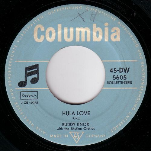 Nun zu den Singles von Buddy Knox in chronologischer Reihenfolge (einschließlich deutschen und skandinavischen Pressungen). Jedoch vorher noch ein Scan der Variante 4. von Ralf: