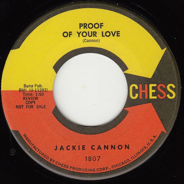 Chess übernahm im November 1961 Jackie Cannons Aufnahmen "Proof Of Your Love" und "Chill Bumps" von dem kleinen Label Chan (Oklahoma City), wo sie im Oktober mit der Nummer 103 erschienen waren.