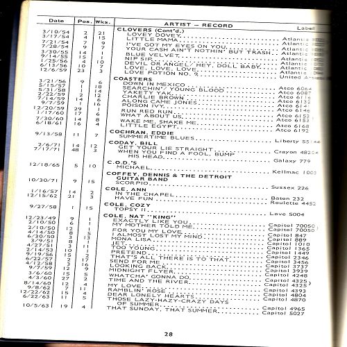 In den R&B-Charts war er zwischen 1942 und 1991 mit 47 Titeln (6x # 1) mit seinem Trio oder seit 1950 als Solist vertreten. Der Entertainer und Komponist konnte auch in einigen Kinofilmen mitwirken, u.a. “St. Louis Blues“-1958, “Cat Ballou“-1964 und “Love Affair“-1995. In der deutschen Produktion “Schlagerraketen“ ist er 1960 in einer kurzen Sequenz mit seinem Titel “Mona Lisa“ zu sehen. Die Sängerin Natalie Cole * 1950 ist eines seiner drei Kindern aus einer 2. Ehe mit der Sängerin Maria Hawkins Ellington.