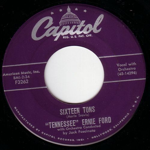 1955 hatte Ford mit “Sixteen Tons“, komponiert von Merle Travis (* 1917 in Rosewood/Kentucky), einen unerwarteten Hit. In dem sozialkritischen Stück geht es um das Klagen eines Bergmanns, der sich nicht aus dem Würgegriff der Minengesellschaft befreien kann. “Sixteen Tons“ war 10 Wochen die # 1 in den Country-Charts und 8 Wochen # 1 der Pophitparade.