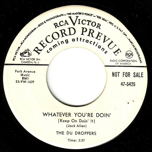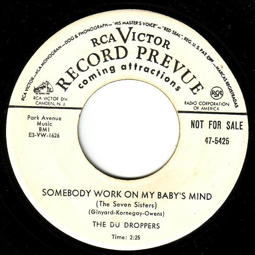 die erste Platte der Du Droppers, "Can't do sixty no more", erschien 1952 auf dem Red Robin Label und war ein sogenannter Answer-Song auf "Sixty minute man" von den Dominos. Den großen Erfolg brachte erst der Wechsel zu RCA und ihr "I wanna know" aus 1953 (Platz 3 der R&B Charts). 1955 war es mit den Du Droppers schon wieder vorbei. Ein Gruppenmitglied schloß sich dem Golden Gate Quartet an.