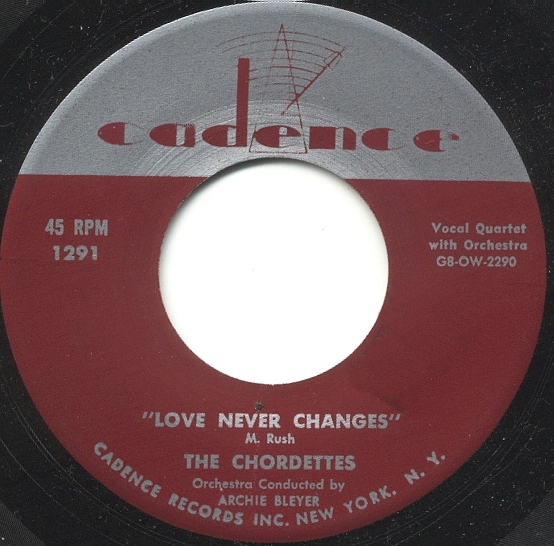 eine Single der Chordettes gibt mir Gelegenheit, verschiedene Cover-Varianten und deutsche Cover-Versionen beider Seiten vorzustellen. Es handelt sich um „A girl´s work is never done“ und „ No wheels”. Zuerst einmal die scans von Seite 1 der Platte: ein Farbcover mit entsprechendem Vynil, dann dasselbe Bild jedoch schwarz-weiß, wiederum mit der dazugehörigen Scheibe. Bei beiden Hüllen ist die 2. Seite (diese kommt im zweiten Teil der Geschichte dran!) anders als die erste. Bei Hülle Nummer drei sind beide Seiten gleich – deshalb, weils eine Promo-Platte von „A girls work is never done“ ist, und so ist auch auf der Rückseite das gleiche Lied drauf!! Eigentlich ungewöhnlich. (Hoffentlich habe ich jetzt keine Verwirrung gestiftet…)