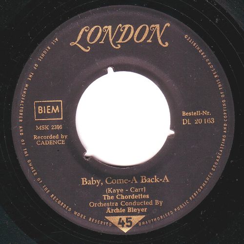 eine Single der Chordettes gibt mir Gelegenheit, verschiedene Cover-Varianten und deutsche Cover-Versionen beider Seiten vorzustellen. Es handelt sich um „A girl´s work is never done“ und „ No wheels”. Zuerst einmal die scans von Seite 1 der Platte: ein Farbcover mit entsprechendem Vynil, dann dasselbe Bild jedoch schwarz-weiß, wiederum mit der dazugehörigen Scheibe. Bei beiden Hüllen ist die 2. Seite (diese kommt im zweiten Teil der Geschichte dran!) anders als die erste. Bei Hülle Nummer drei sind beide Seiten gleich – deshalb, weils eine Promo-Platte von „A girls work is never done“ ist, und so ist auch auf der Rückseite das gleiche Lied drauf!! Eigentlich ungewöhnlich. (Hoffentlich habe ich jetzt keine Verwirrung gestiftet…)