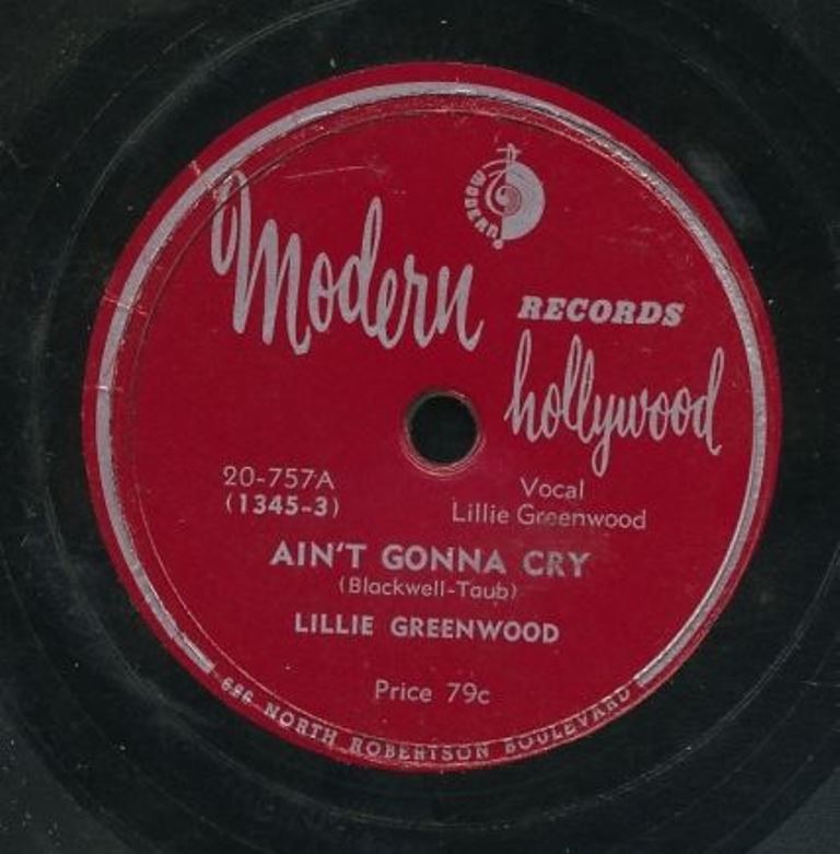 08 50....20-757A....LILLIE GREENWOOD..Ain't Gonna Cry (1345-3)/B….Come Back Baby (1347-4)