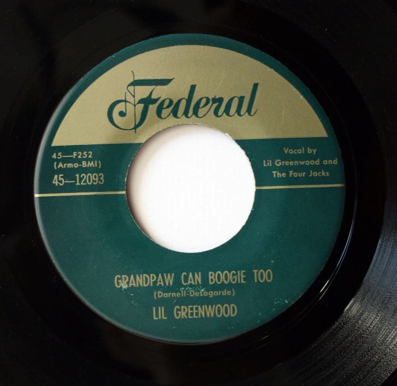 08 52....45—12093....LIL GREENWOOD Vocal by Lil Greenwood and The Four Jacks..Grandpaw Can Boogie Too (45—F252)/Never Again (45—F253)