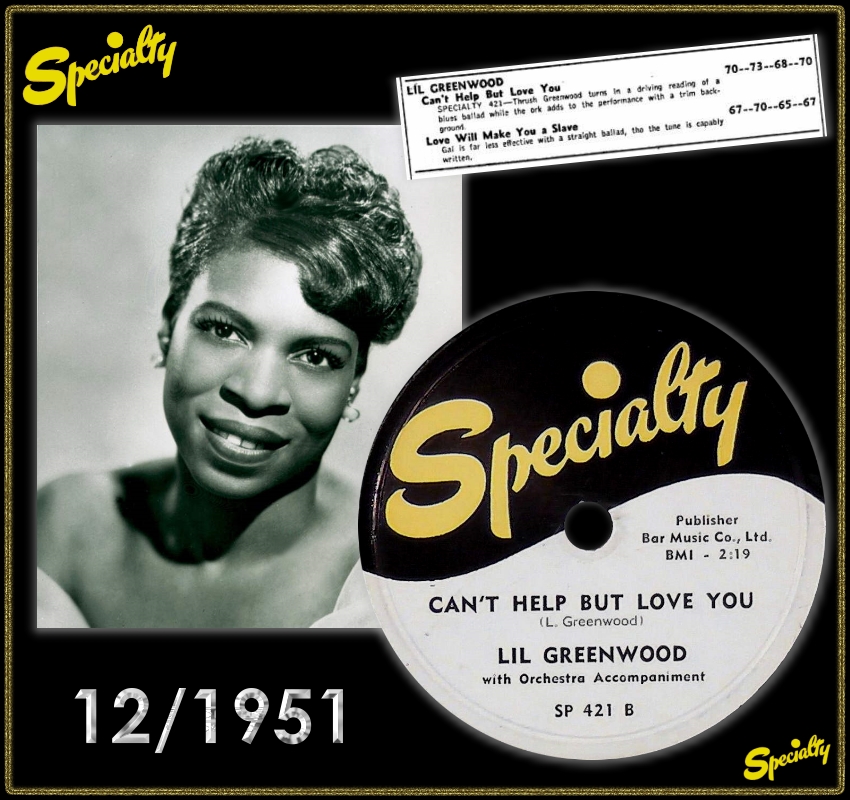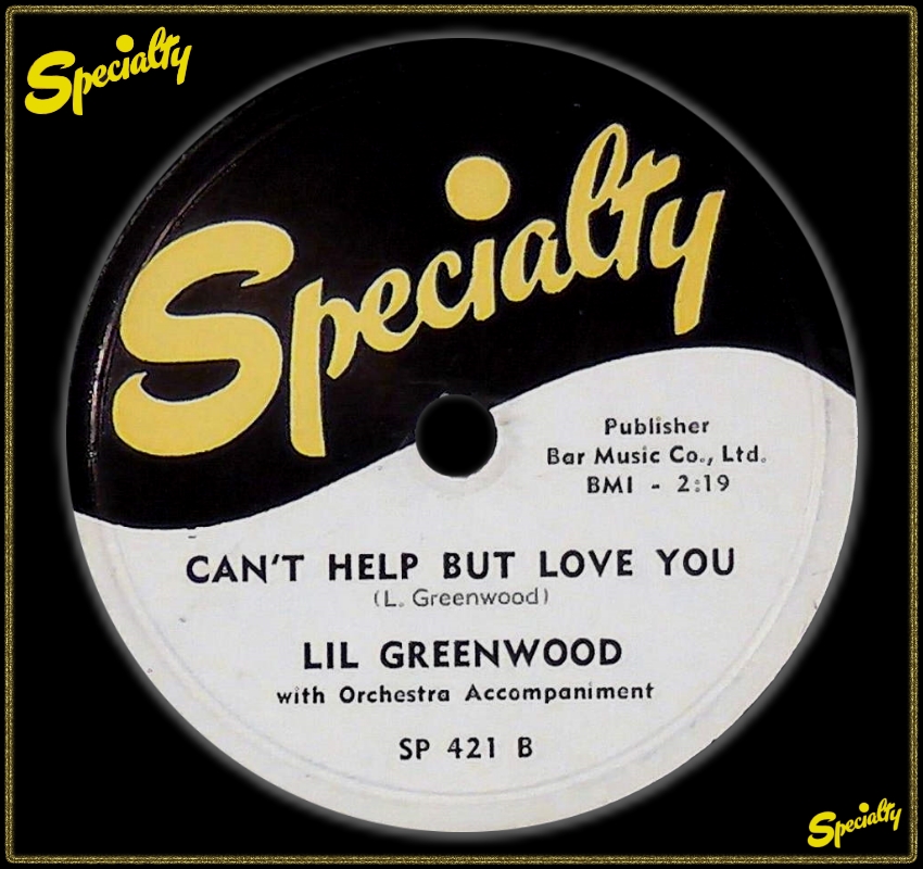 SPECIALTY (78er) 02 52....SP 421 A....LIL GREENWOOD with Orchestra Accompaniment..Love Will Make You A Slave/ B….Can't Help But Love You