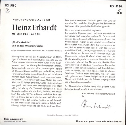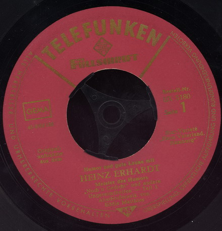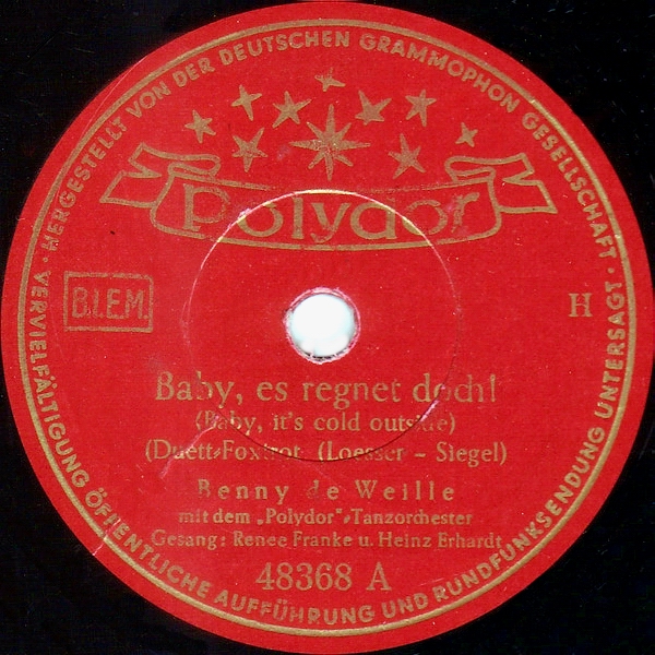 ich kann nicht anders - der Heinz, er lebe hoch! 1949 war's, als Louis Jordan und Ella Fitzgerald ihr berühmtes Duett "Baby, it's cold outside" sangen. Die deutsche Version von Renée Franke und Heinz Erhardt ist für mich noch immer ein Ohrenschmaus. Gibt's nur mit 78 Umdrehungen.