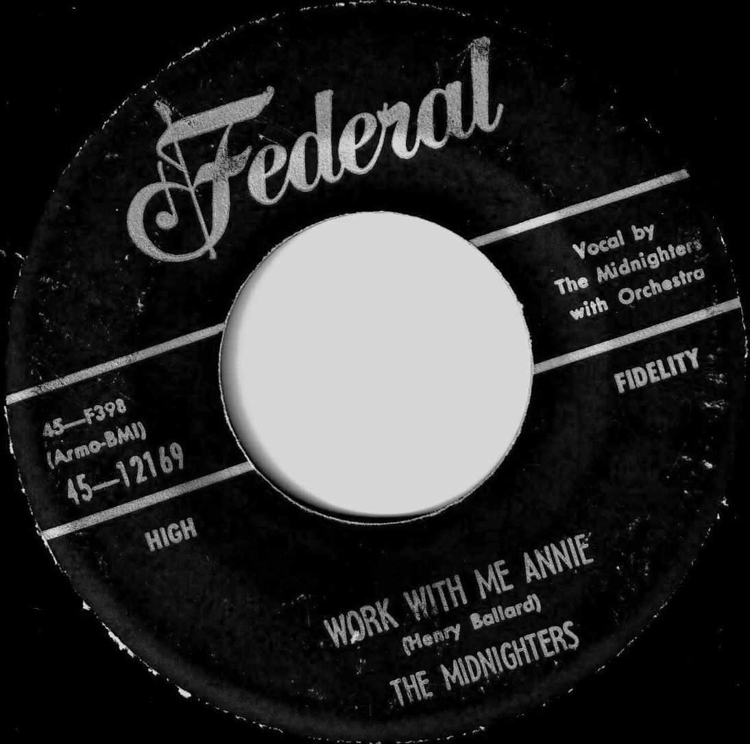 Bereits der nächste Chart-Einstieg mit dem legendären Titel “Work With Me Annie“ # 1 der R&B-Charts, nachempfunden vom Royals-Hit “Get It“, erschien 1954 unter dem geänderten Namen The Midnighters. In der besonderen Thematik hatte man sich an "dirty" Songs wie “Money Honey“ von The Drifters oder “Sixty Minute Man“ von The Dominoes angelehnt. Wegen des anzüglichen Textes von “Work With Me Annie“ war die Plattenfirma nicht unbedingt von dem Song angetan und veröffentlichte ihn auf der Schallplatten-Rückseite. Erste Pressungen im Zuge der Schallplattenfertigung sollen noch als The Royals auf Federal 12169 erfolgt sein? Hank Ballard, der diesen Titel zusammen mit dem A&R-Leiter Ralph Bass komponiert hatte, wurde von dem Discjockey und Kritiker Charles Hobson als der Mann bezeichnet, der mit diesem Erotik-Klassiker die "schwarze Nationalhymne" des Jahres 1954 geschrieben hatte. Aber es kam, wie es kommen musste, ein Geschwader von Nonnen regte sich über die Anzüglichkeiten des Songs auf, mit dem Ziel, die Schallplatte aus den Jukeboxen zu verbannen. Das Lied entwickelte sich daraufhin erst recht zu einem Verkaufsschlager, verkaufte sich in den Regionen von New York und Philadelphia wie wild und schnellte ab Mai 1954 für sieben Wochen auf # 1 der R&B-Charts und sogar auf # 22 der Pop-Charts.