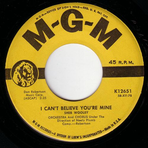 10 58...M 20 949...SHEB WOOLEY Orchestra and Chorus directed by Meely Plumb The Purple People Eater/SHEB WOOLEY with Bob Porter and Orchestra Recipe For Love (MGM 12651/12541 dann in D: 45 MG 193)