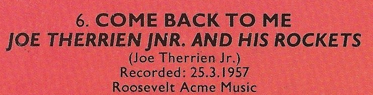 Einer der ersten Yankees, der Ende 1956 Rockabilly aufnahm, war Joe Therrien jr. mit seinen Rockets. Aufgrund des französischen Namens habe ich zunächst vermutet, dass er aus Louisiana stammte. Therrien wurde aber 1930 in Springfield, Massachussets geboren (und starb am 27.08.1993 in Pensacola, Florida).