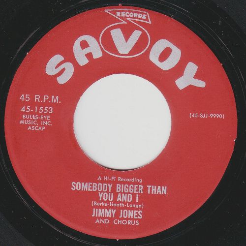 Damit es nicht mehr so einfach ist, die von mir gezeigte SAVOY fehlt bei Goldberg. Die Stimme dieses Interpreten unterscheidet sich auch sehr von dem uns bekannten Jimmy Jones, da sie weit tiefer angelegt ist. Sollte es sich wirklich um den gleichen Interpreten handeln, wäre das nur durch technische Verfremdung der Stimme möglich. Das kann ich aber kaum glauben. Weiß einer von euch mehr ?