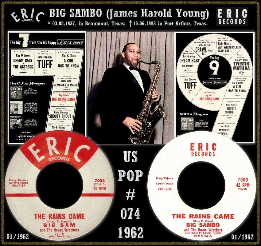 Mit der langsamen R&B - Nummer "The Rains Came" war er ab März 1962 sieben Wochen in den Charts und erreichte Platz 74. Aber wer war "er" ? Das einzige das ich eruieren konnte ist, dass er James Young heissen soll. Es gibt auch auf JET STREAM 808 eine Single, wo er als James Young & The House Wreckers die zwei Titel "Barkin' Up The Wrong Tree" und "Funky Booty" interpretiert.