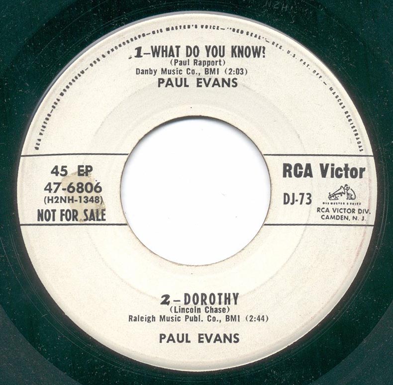 LP 2248 (1960) "PAUL EVANS SINGS THE FABULOUS TEENS"