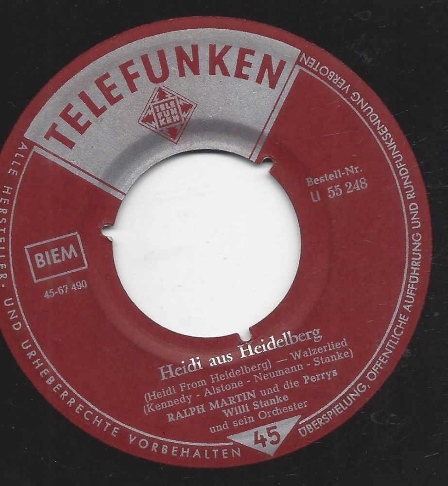 MARTIN, RALPH, Sänger, 1960 Telefunken 55248 ("Die Rose Von Der Reeperbahn"/"Heidi Aus Heidelberg (Heidi From Heidelberg)" & Die PERRYS & WILLI STANKE und sein Orchester)
