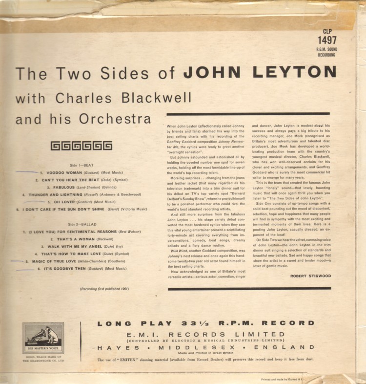 | Information: | Leyton, John HMV CLP 1497 The Two Sides Of.. B |